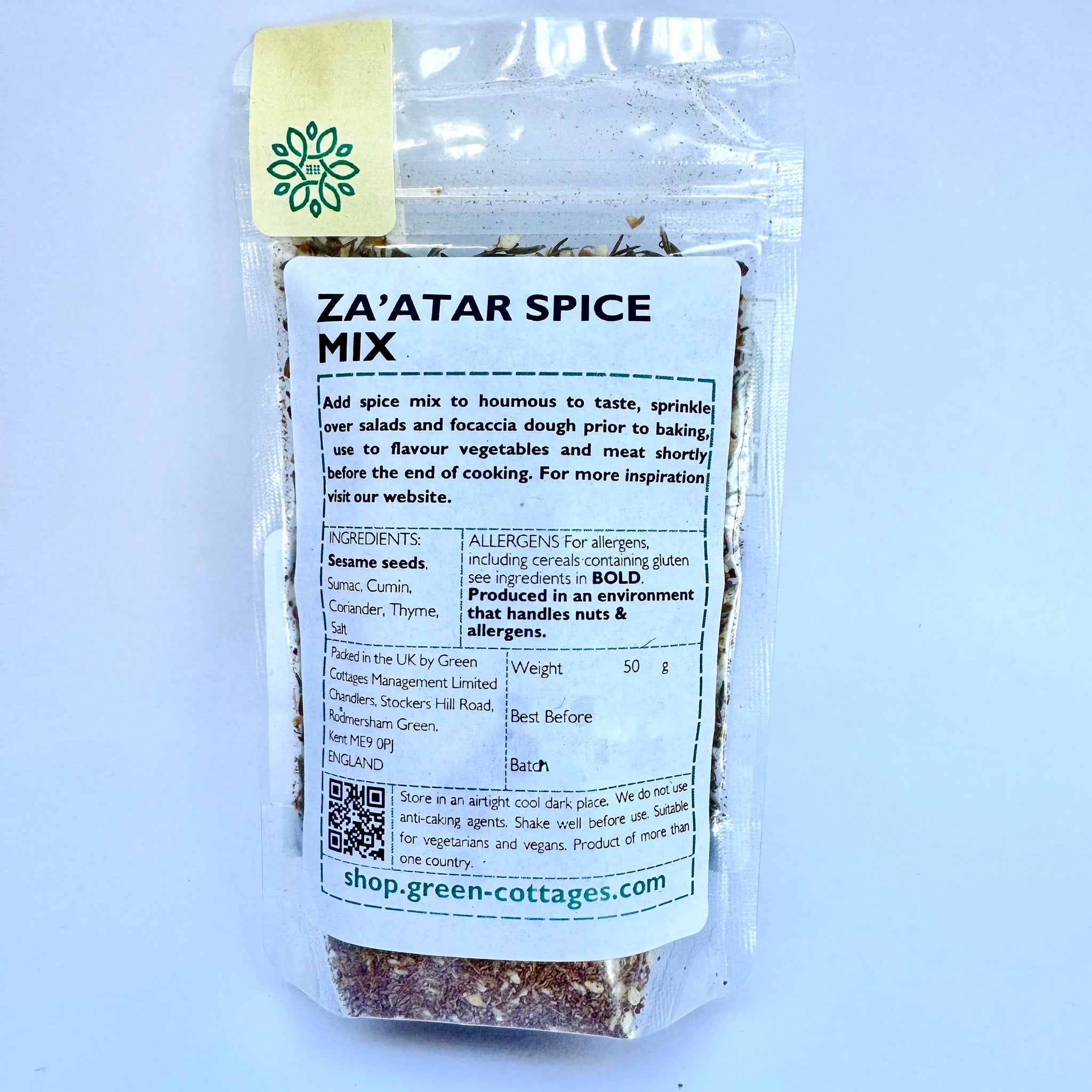 - Za’atar is a Middle Eastern seasoning that can be used as a condiment, rub or sprinkle, made with sesame seeds with aromatic and tangy sumac and selected herbs and spices. An authentic hand toasted and blended premium spice, prepared by us at Green Cottages Kitchen, in Kent.